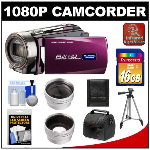 Night Vision Camcorder - Bell & Howell DNV16HDZ 1080p HD Video Camera Camcorder with Infrared Night Vision (Maroon) with 16GB Card + Case + Tripod + Wide Angle & Telephoto Lenses + Accessory Kit Reviews !!!